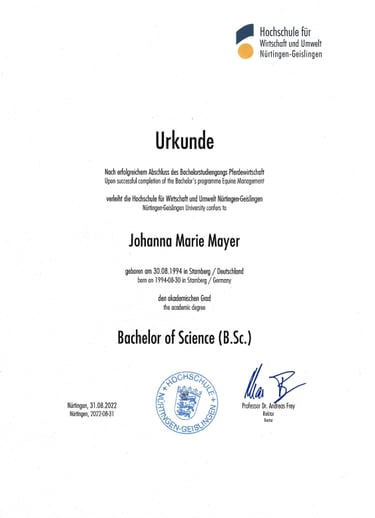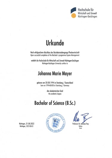 Bachelor of Science Pferdewirtschaft an der Hochschule für Wirtschaft und Umwelt Nürtingen/Geislingen