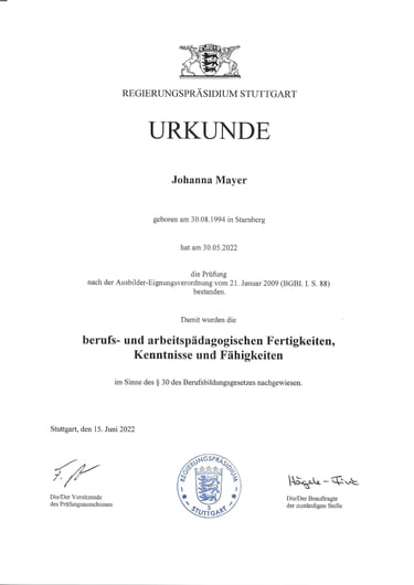 Ausbilder-Eignungsprüfung im Regierungspräsidium Stuttgart