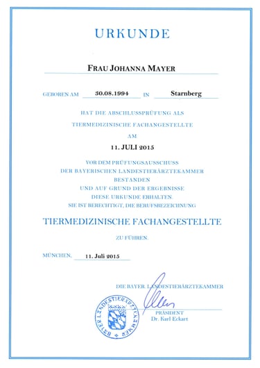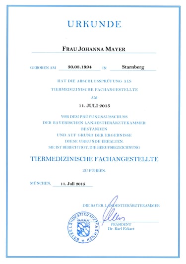 Ausbildung zur Tiermedizinischen Fachangestellten in der Tierklinik Weilheim